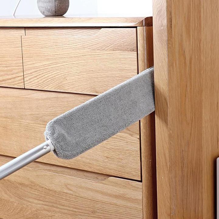 מטאטא האבק מורכב ממוט טלסקופי בעל ידית רחבה וגמישה עליו מולבש מטלית בטכנולוגיית מיקרופייבר נוצות.